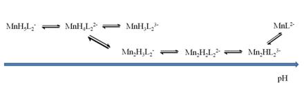лиганда образуются преимущественно моноядерные бискомплексы. При увеличении рН