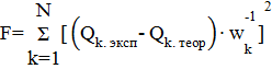 свойство раствора в k-том эксперименте и его теоретический аналог, N - число экспериментов,