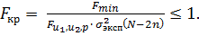где σ и σэксп - дисперсии расчета и эксперимента соответственно, u1 и u2 - число степеней свободы числителя и знаменателя (16), р - заданный уровень значимости критерия.