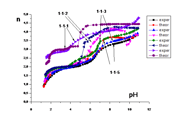 Обработку экспериментальных зависимостей тех или иных физико-химических свойств от состава растворов проводили по программе СPESSP (Complex formation Parameters of Еquilibria in Solutions with Solid Phases) [49]. Программа реализована на IBM PC AT и позволяет обрабатывать данные различных методов исследования (ЯМР, рН-метрия, потенциометрия, поляриметрия, спектрофотометрия и т.д.), характеристический параметр которых подчиняется правилу аддитивности.