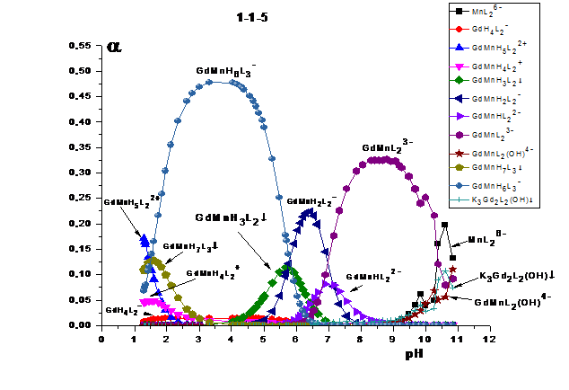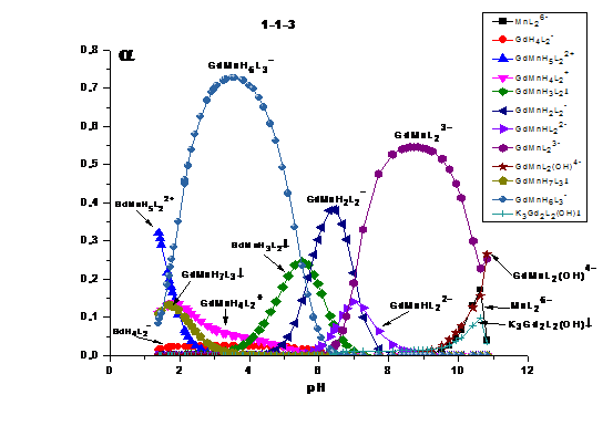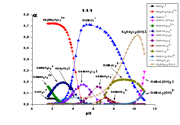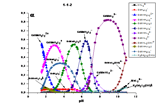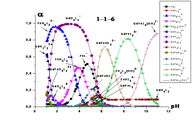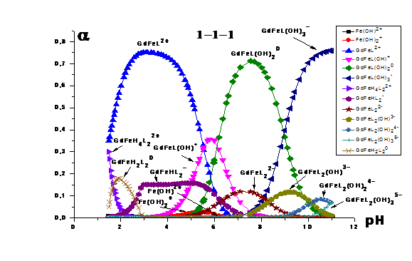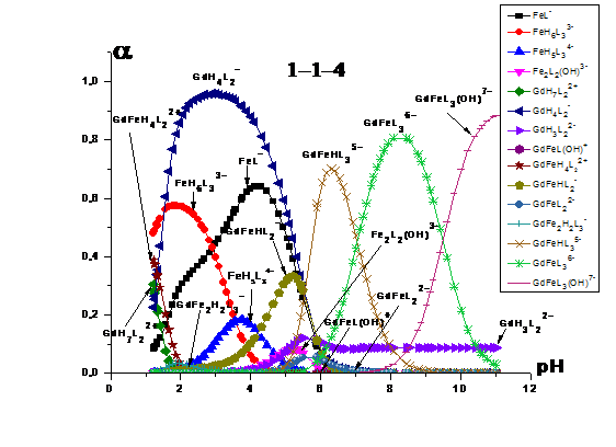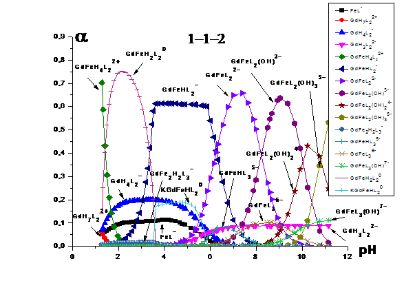 гетероядерные формы системы «Gd(III) -Fe(III) -HEDP»устойчивее гетероядерных комплексов