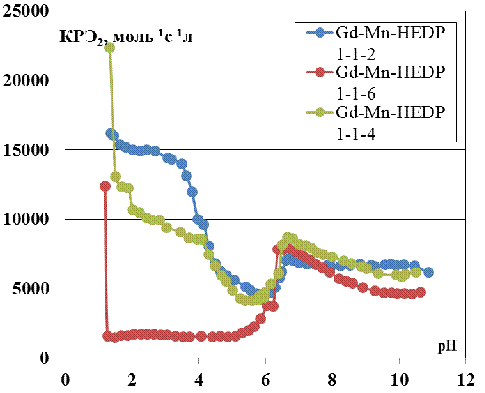 системы «Gd(III) -Mn(II) -HEDP». Это связано с существенно меньшим ионным радиусом и