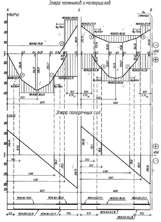 В месте теоретического обрыва арматура 2Ø25 A-III с As= 9,82 см2= 181,65 кНм