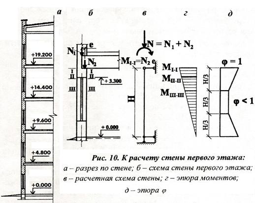 приложенной в центре тяжести поперечного сечения стены. Нагрузку от перекрытия,