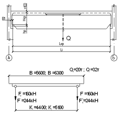 Рис. 1 - Технические характеристики опорных мостовых кранов 1, 2