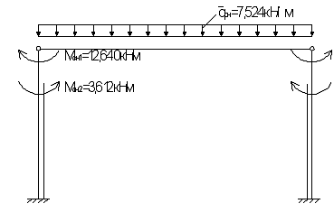 поперечных рам, образованных защемленными в фундаментах колоннами и шарнирно