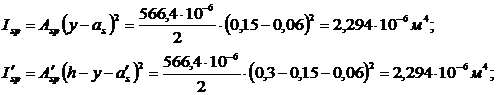 моменты инерции нижней и верхней арматуры
