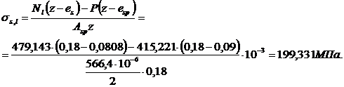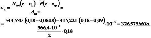 напряжения в бетоне на уровне ц. т. нижней и верхней арматуры