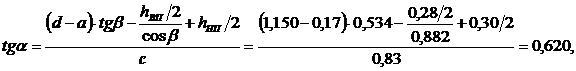 угол наклона приопорной панели верхнего пояса,