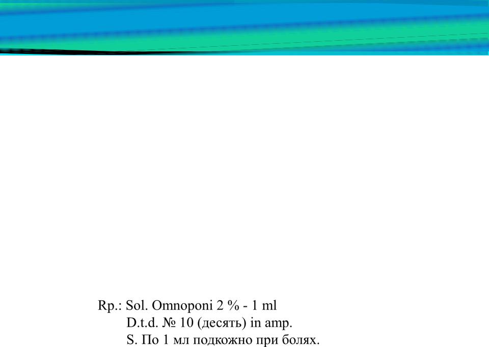 Выписать раствор омнопона 2% в ампулах по 1 мл. Назначить по 1 мл подкожно при болях (выписывается на