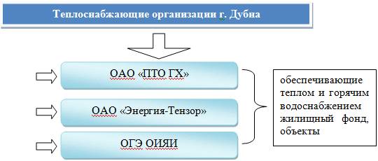теплоснабжающие организации (ОАО «ПТО ГХ», ОАО «Энергия-Тензор», ОГЭ ОИЯИ),