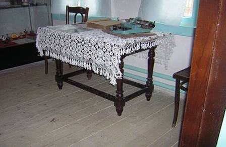 «Рис. 7 Дом - музей Ерошенко. Письменный стол В.Я. Ерошенко, на столе письменная машинка Ласточка для письма шрифтом Брайля»