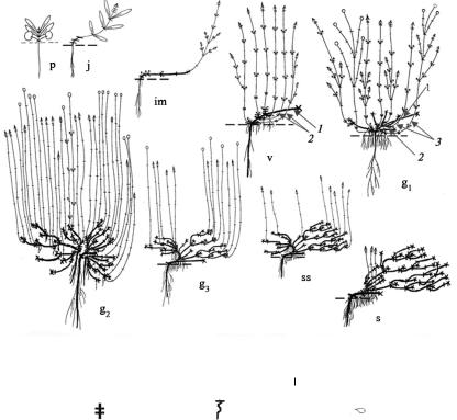 безрозеточные генеративные побеги, а в средней – безрозеточные вегетативные побеги обогащения. Последние могут ветвиться.