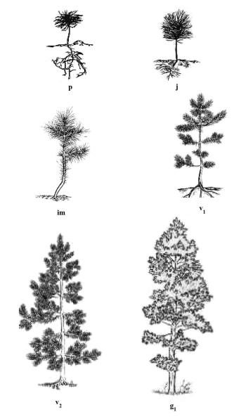 Рис. 3. Онтогенез сосны обыкновенной (Pinus sylvestris L.) (начало):