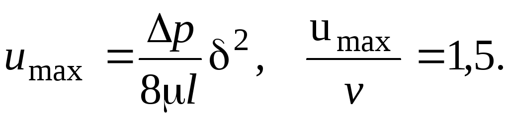 Таким образом, максимальная скорость в плоском канале в полтора раза больше средней.