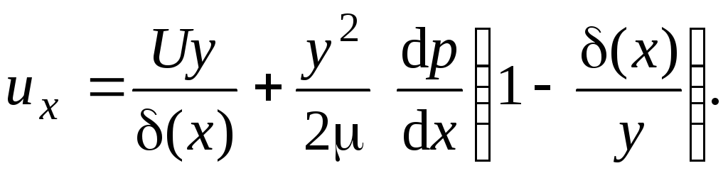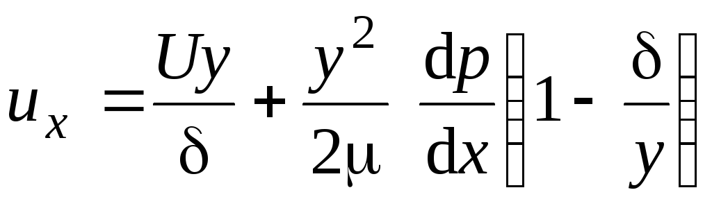 Течение Куэтта имеет место в том случае, если одна из поверхностей, образующих канал, движется вдоль оси 0х (рис. 2.34). Такие течения наблюдаются в зазорах между валом и корпусом подшипника скольжения, в роторно-пленочных и скребковых теплообменных аппаратах между торцами лопастей (скребков) и корпусом аппарата, в стерилизаторах фрикционного типа, в которых нагрев продукта происходит за счет теплоты, выделенной в результате трения жидкости при движении ее между вращающимися и неподвижными дисками или цилиндрами.