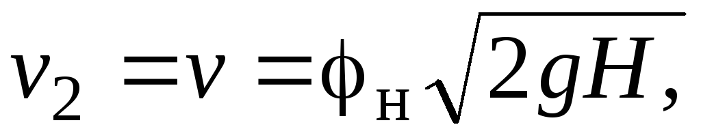 Записав уpавнение Беpнулли для сечений I–I и II–II, пpе-небpегая потеpями по длине насадка и делая те же преобразования, что и при истечении из отверстия, получим