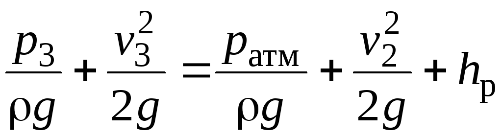 Величину вакуума в зоне сжатия можно найти, составив уpавнение Бернулли для сечений III–III и II–II (см. pис. 2.50).