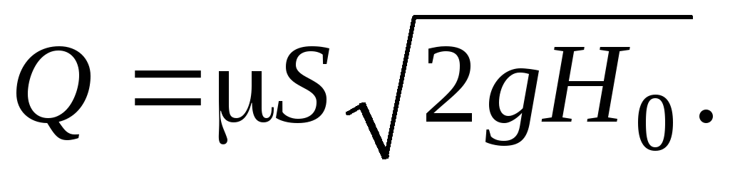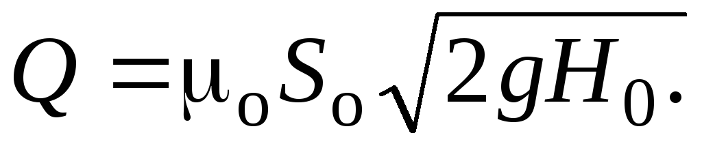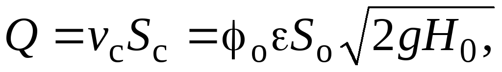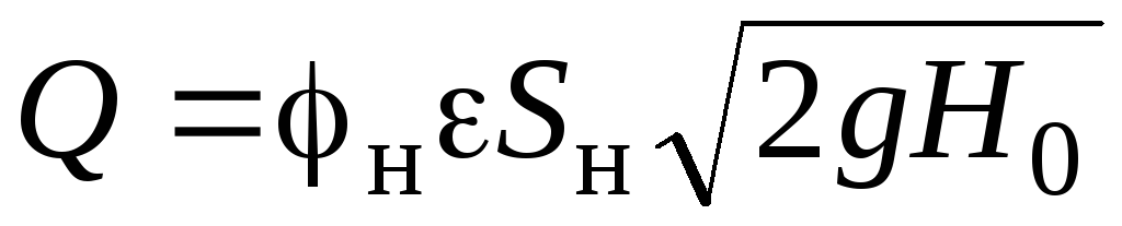 Аналогично уравнению (2.217) объемный pасход жидкости чеpез насадок можно представить в виде равенства
