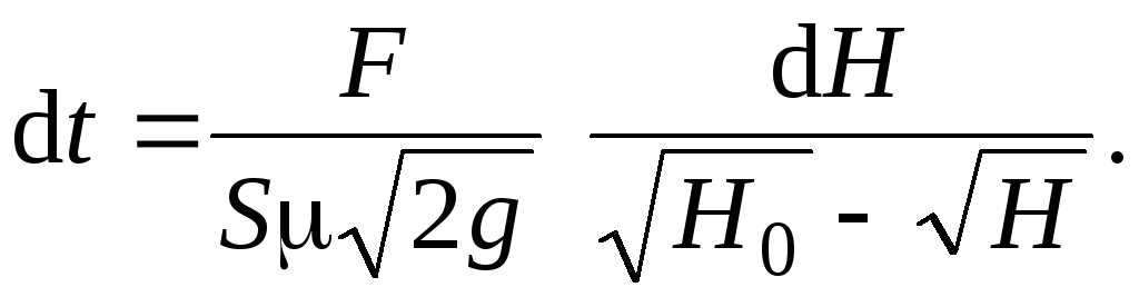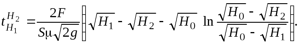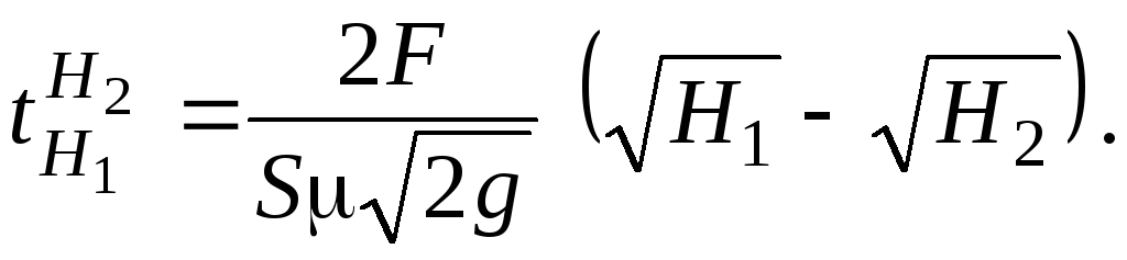 8. Во сколько раз время полного опорожнения сосуда больше времени истечения того же объема жидкости при постоянном напоре?