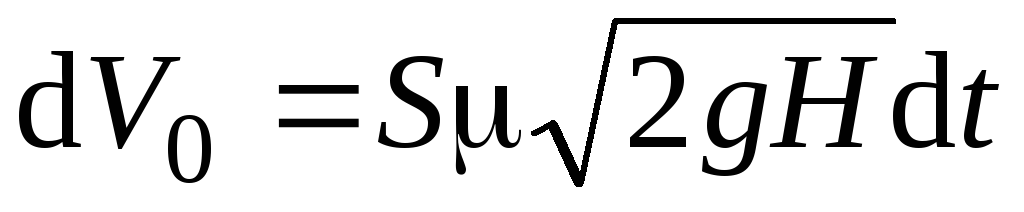 Рис. 2.51. Схема истечения жидкости при переменном напоре