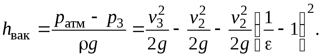 5. Как определить максимальную глубину вакуума в зоне сжатия струи?