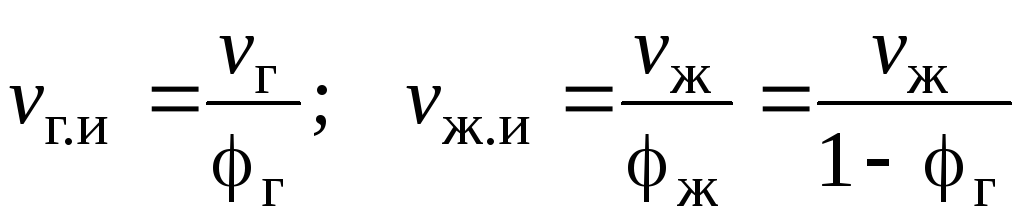 Истинная скорость фазы есть отношение объемного расхода данной фазы к площади сечения, занятой этой фазой: