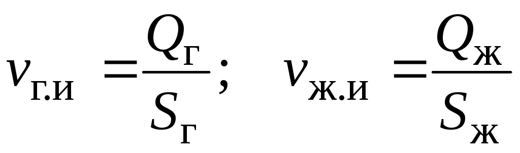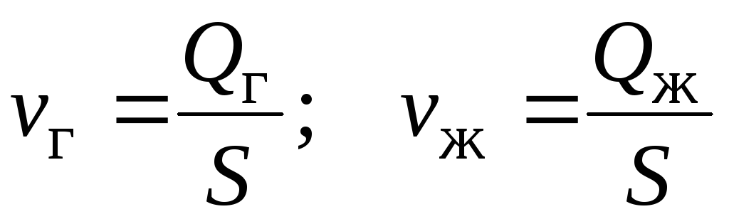 Приведенные скорости фаз есть отношение их объемных расходов к площади сечения потока: