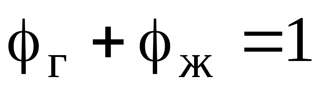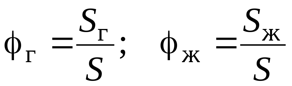 Истинной объемной долей фазы называется отношение площади сечения, занятой данной фазой, к площади сечения всего потока. Доля газа (газосодержание) и доля жидкости: