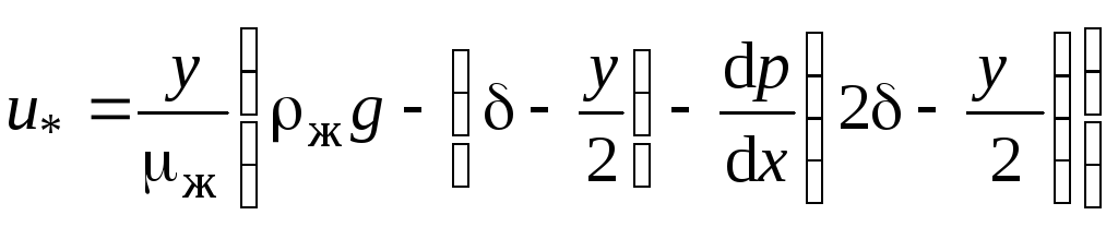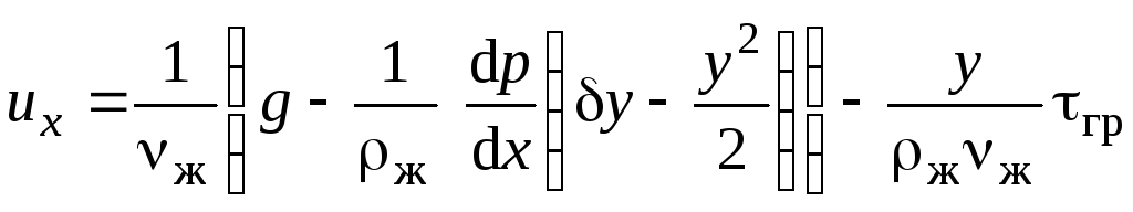 В итоге уравнение распределения локальной скорости по сечению пленки будет иметь вид (в дальнейшем ограничимся вертикальной поверхностью) [9]