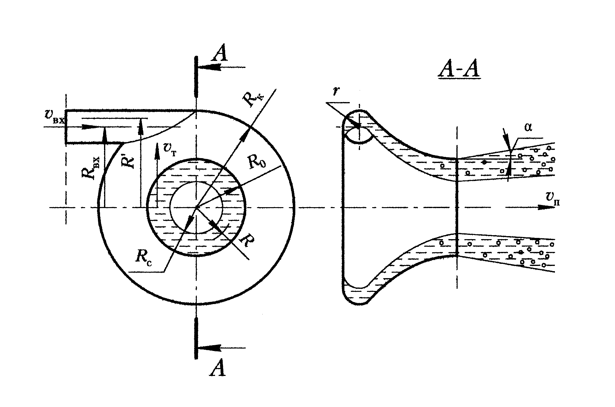 – текущий радиус входного патрубка.