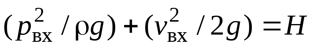 – располагаемый напор на входе