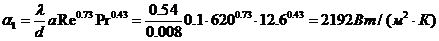 Коэффициент теплоотдачи: