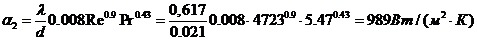 Расчет коэффициента теплопередачи второго корпуса: