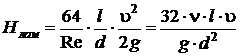 определения потерь напора на трение при ламинарном режиме: