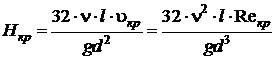 через критическое значение числа Рейнольдса Reкр в следующем
