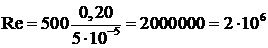 происходит в области квадратичного трения, в этом случае число Re определяем