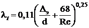 Определяем значение коэффициентов гидравлического трения λi по формуле Альштуля: