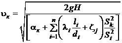 Подставляем значения найденных коэффициентов в формулу для определения значения скорости истечения жидкости из трубопровода: