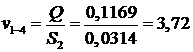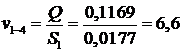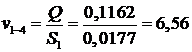 определяем значение скоростей на всех линейных участках трубопровода.