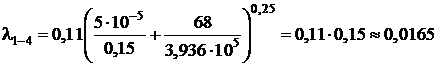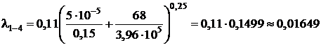 В соответствии с полученными значениями числа Re для каждого линейного участка трубопровода определяем значение коэффициентов гидравлического трения λi по формуле Альштуля (для турбулентного режима) [3; с.57]: