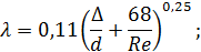 формуле Дарси-Вейсбаха: