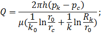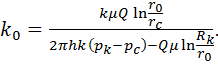 Радиус зоны с проницаемостью к0 |