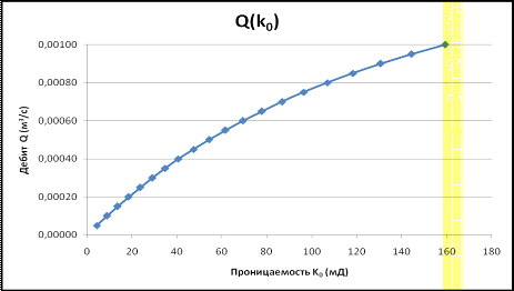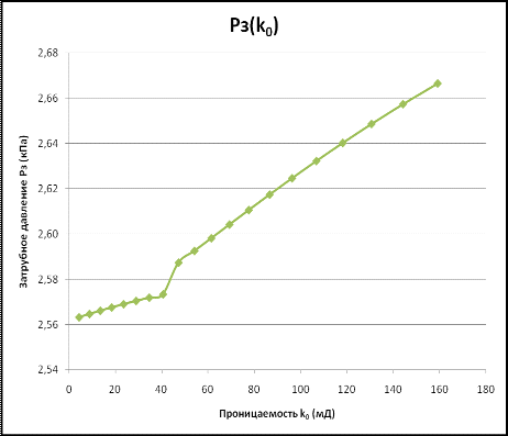 дебита скважины от проницаемости Q=f(k0) и давления в затрубном пространстве от