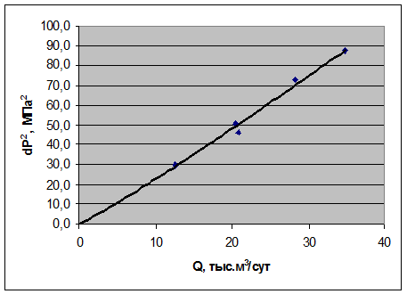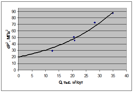 Рисунок 11 Зависимость dP2 от Q скважины №7 по результатам стандартной обработки.