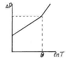 В следствии низкого пластового давления уровень раствора глушения (обычно техническая вода γ=1.03г/см3) будет постоянно падать. Раствор глушения будет заполнять трещину, вытесняя из нее нефть и незначительно фильтроваться в пласт. После заполнения всей трещины раствор будет фильтроваться непосредственно в пласт. На диаграмме в логарифмических координатах это отразится изломом кривой.