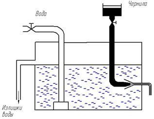 Рис 1.1 Схема опыта Рейнольдса: 1 - струйка чернил; 2 - трубка.