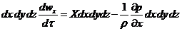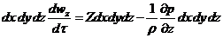 Согласно основному принципу динамики, сумма проекций сил, действующих на движущийся элементарный объем жидкости, равна произведению массы жидкости на ее ускорение.