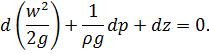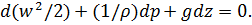 При действии только силы тяжести на поток жидкости силовая функция dU=-gdz и из (1.10) получим
