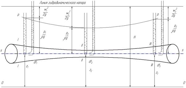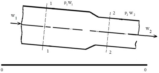 Рассмотрим движение струйки вязкой жидкости в трубопроводе, изображенном на рис. 1.6.